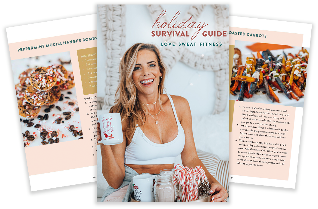 Check out my Holiday Survival Guide & Recipe Book for more Holiday recipes you can enjoy all holiday season long!! It is the ultimate guide to surviving and thriving this holiday season! It has over 30 healthy holiday recipes, on-the-go travel workouts & tips, self-care essentials to help you de-stress and soak up all the feels, DIY gift ideas, and even things like shopping checklists and budget trackers!