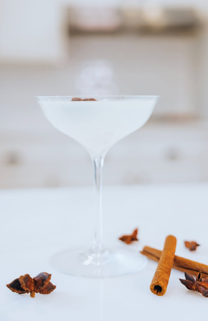 4. Shake her up and serve in a cute coupe glass with a sprig of thyme and star anise to garnish.