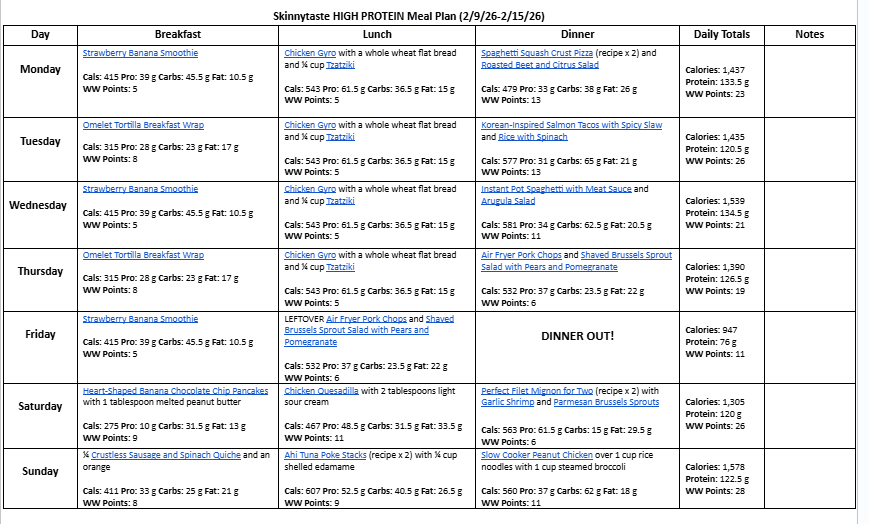 Lastly, if you’re on Facebook join my Skinnytaste Facebook Community where everyone’s sharing photos of recipes they are making, you can join here. I’m loving all the ideas everyone’s sharing! If you wish to get on the email list, you can subscribe here so you never miss a meal plan!