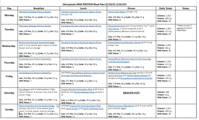 It’s time to switch back to alternating between regular meal plans and high-protein ones! Even with Valentine’s Day this week, there’s no reason you can’t stay on track and crush your goals. In fact, I’ve even included a high-protein dinner for the special day in this week’s meal plan!