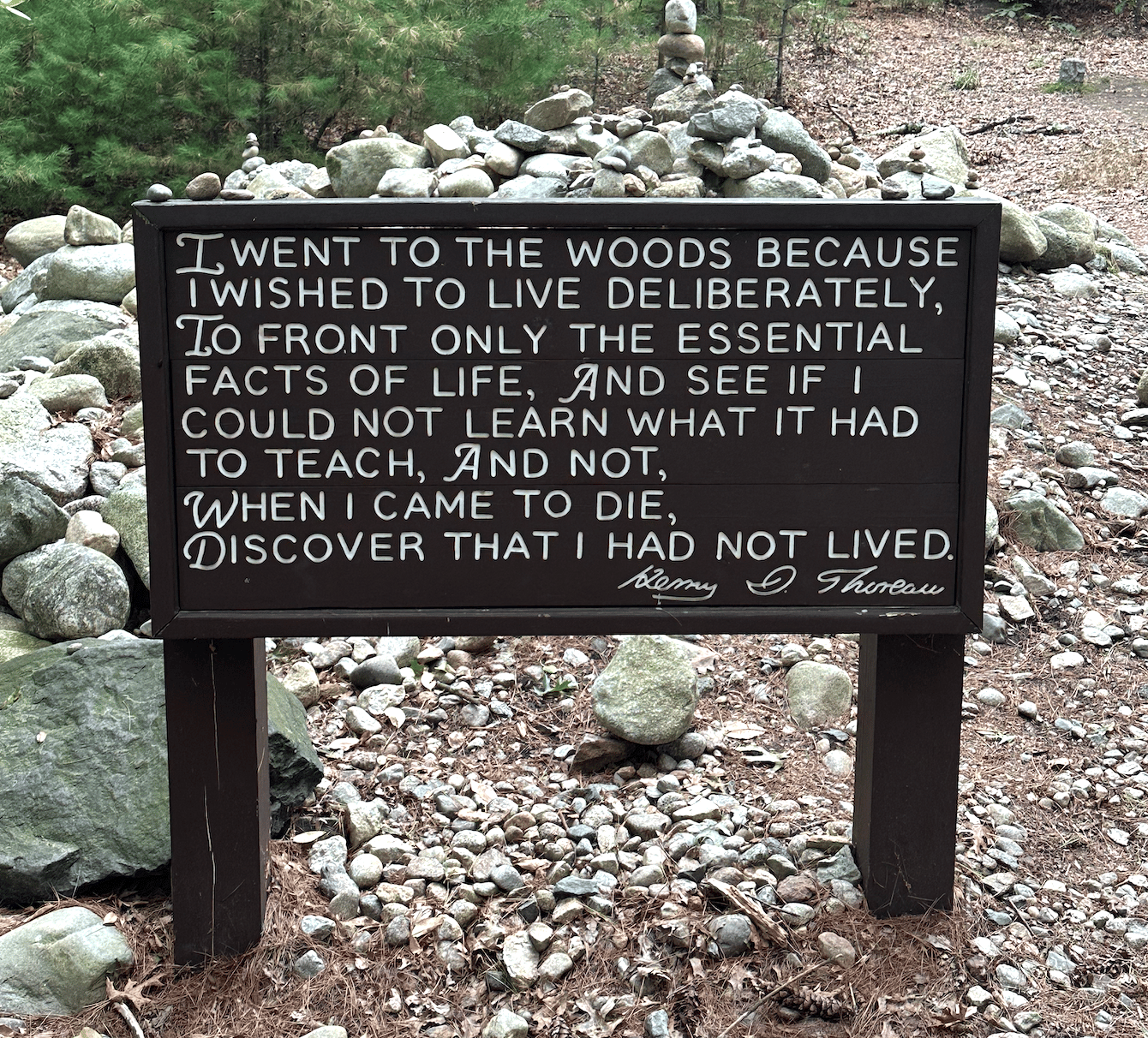 I then read the sign with Thoreau’s most famous reflection: