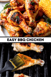 If you’re craving easy BBQ chicken that’s juicy, flavorful, and perfect for grilling season, this recipe is for you! Whether you cook it on the grill, bake it in the oven, or use your air fryer, you’ll get tender chicken coated in a smoky-sweet barbecue sauce every time. It’s a summertime classic that’s simple enough for busy weeknights, too! Serve this with corn on the cob and coleslaw for an easy summer meal. For more of my favorite grilled chicken recipes, try these Barbeque Chicken Foil Packets, BBQ Chicken Salad, and Barbeque Chicken Quesadilla.