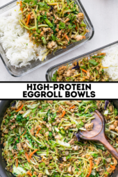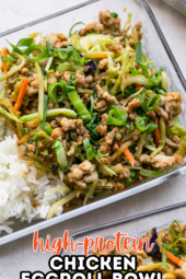 This high-protein Chicken Egg Roll Bowl made with ground chicken and veggies is great to meal prep for lunch or enjoy as a quick dinner!