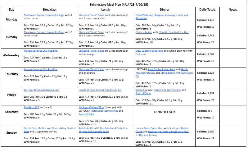 Free 7 Day Healthy Meal Plan (April 14-20)