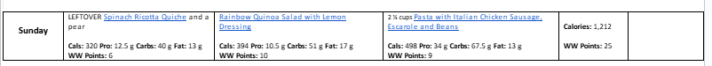 *This is just a guide, women should aim for around 1500 calories per day. Here’s a helpful calculator to estimate your calorie needs. I’ve left plenty of wiggle room for you to add more food such as coffee, beverages, fruits, snacks, dessert, wine, etc.