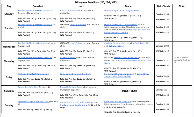 Free 7 Day Healthy Meal Plan (Feb 3-9)
