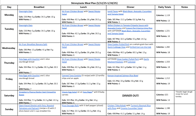 Lastly, if you’re on Facebook join my Skinnytaste Facebook Community where everyone’s sharing photos of recipes they are making, you can join here. I’m loving all the ideas everyone’s sharing! If you wish to get on the email list, you can subscribe here so you never miss a meal plan!