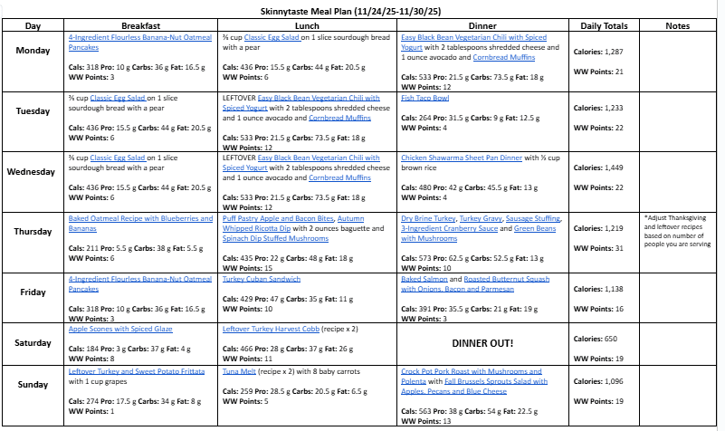 Free 7 Day Healthy Meal Plan (Nov. 24-30)