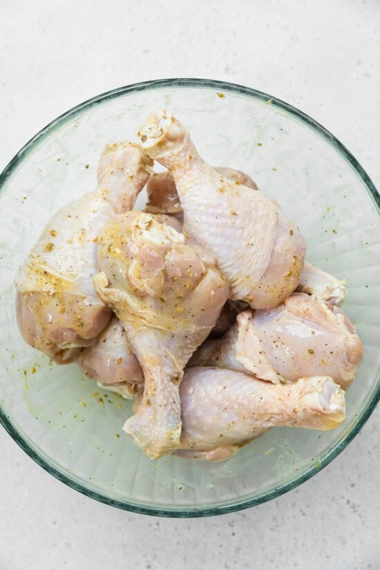 • Chicken Drumsticks: You can cut the skin off if you prefer, but I like the skin on. It gets nice and crispy when broiled. Bone-in skin on thighs or breasts can also be used.
