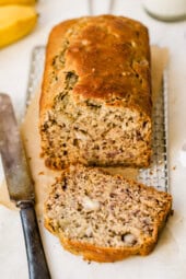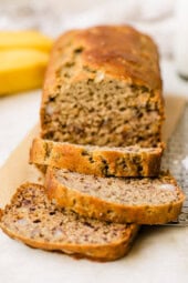 This sourdough discard banana bread is my go-to whenever I have extra discard in the fridge and ripe bananas on the counter.