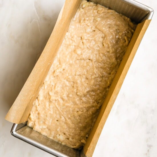 Making sourdough discard banana bread is just as easy as making a regular loaf. Mix the wet and dry ingredients, then bake! See the recipe card at the bottom for printable directions.